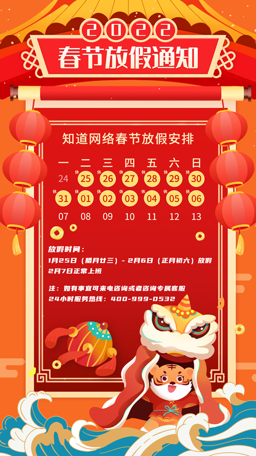 【知道網(wǎng)絡(luò)】2022年春節(jié)放假通知