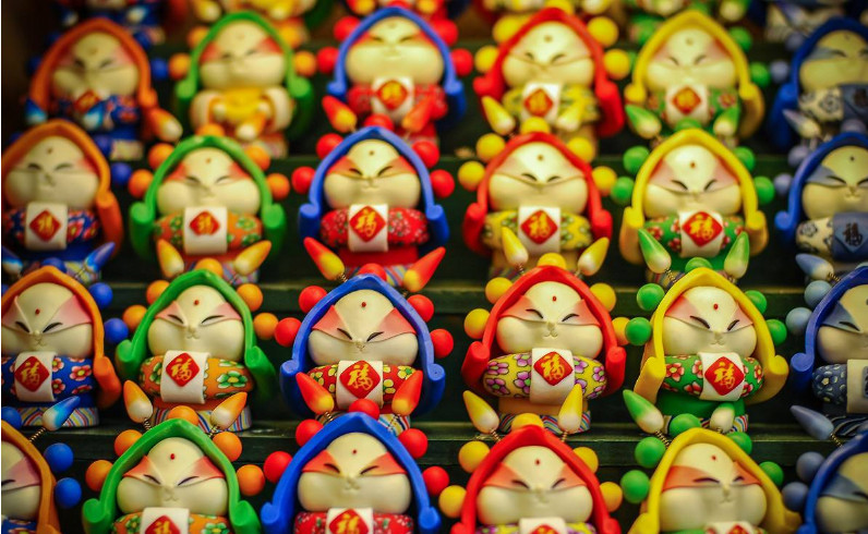 舊時(shí)北京東四牌樓一帶,常有兔兒爺攤子。在民間藝人手中,兔兒爺有了兔首人身,手持玉杵的形象,成為孩子們的絕妙玩具。
