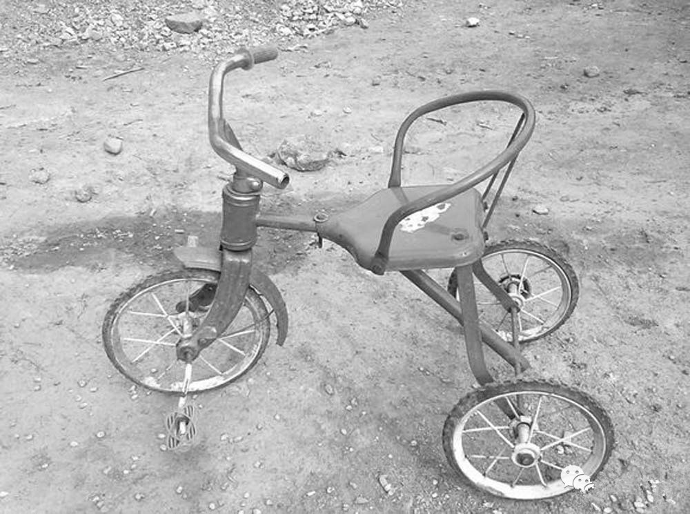 小時(shí)候騎的三輪車子跟現(xiàn)在小孩子騎的那可不是一個(gè)檔次啊!那可是真正的鐵皮做的,前邊一個(gè)轱轆,后邊兩個(gè)轱轆!