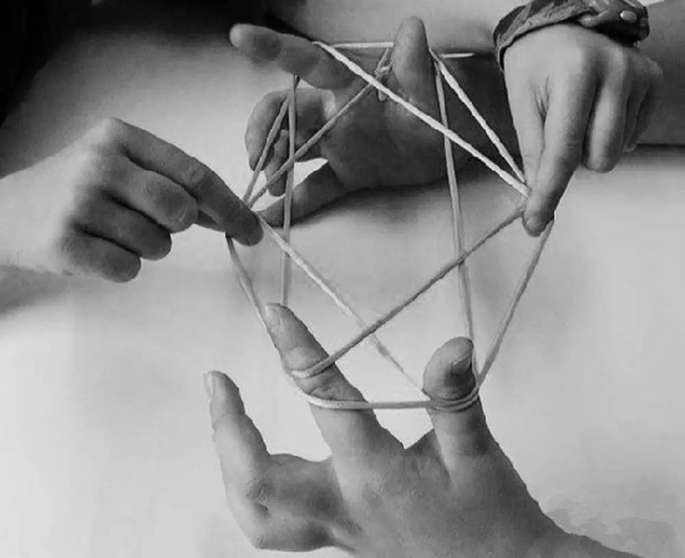到現(xiàn)在,只要有心情,也可以用一根線打個(gè)結(jié)變身成一個(gè)好玩的工具。兩個(gè)小伙伴之間把繩子翻來(lái)翻去,變幻無(wú)窮,也樂(lè)趣無(wú)窮。