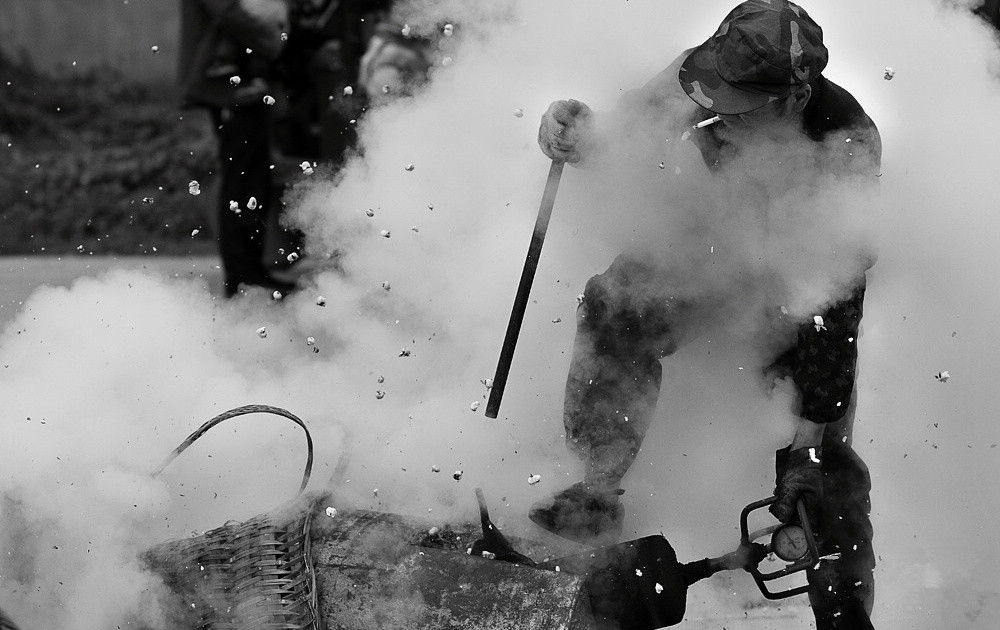 一個(gè)黑溜的鐵球,把米或玉米拌著糖精裝在球里面,一會(huì)兒工夫隨著蹦的一聲,想噴噴的爆米花就出來(lái)了,那時(shí)候這真是美味?。。。ìF(xiàn)在馬路邊還是能經(jīng)常見到的)