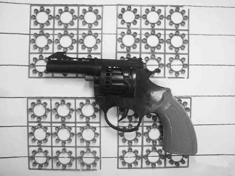 有一種槍,不會(huì)打出子彈,但是裝一種火藥味道的圓盤,打一下會(huì)有很大的聲音和火花?。。?!
