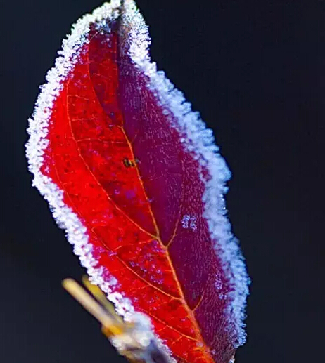 秋晚沒有云彩,地面上如同揭了被,散熱很多,溫度驟然下降到0℃以下,靠地面不多的水汽就會(huì)凝結(jié)在溪邊、橋間、樹葉和泥土上,形成細(xì)微的冰針,有的成為六角形的霜花。