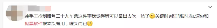 據(jù)每日經(jīng)濟(jì)新聞報(bào)道:有媒體評測了6款搶票軟件:加速包、VIP都試了,根本不頂用,搶票軟件其實(shí)也是在撿漏。