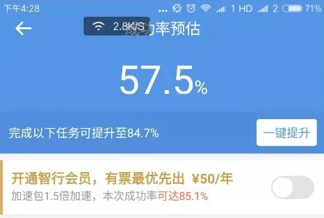告訴我成功率只有57%,如果開通會員的話可以達(dá)到85%,嗯,不開: