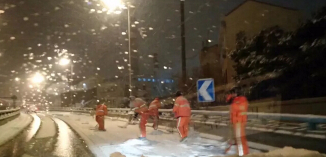 還有部分工人深夜打掃積雪,你們都是可敬可愛(ài)的人?。⌒量嗄銈?!