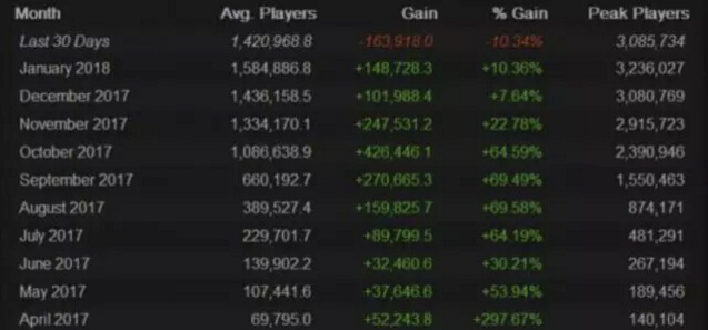 《絕地求生》在昨天公布了Steam平臺的銷量,這款游戲已經(jīng)蟬聯(lián)了50周的銷量冠軍,但是根據(jù)外媒的統(tǒng)計數(shù)據(jù)顯示,最近一個月的用戶數(shù)量已經(jīng)出現(xiàn)下滑,這個17年的爆款游戲在18年初似乎就要出現(xiàn)下滑的趨勢。