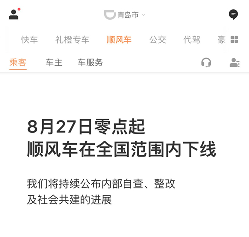 8月28日 20:20左右,滴滴出行創(chuàng)始人程維,總裁柳青終于對外發(fā)表了道歉聲明,滴滴不再以規(guī)模和增長作為公司發(fā)展的衡量尺度,順風車業(yè)務模式重新評估,在安全保護措施沒有獲得用戶認可之前,無限期下線。