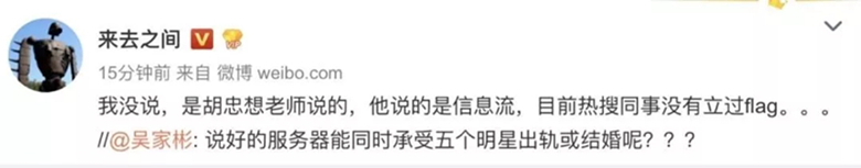 新浪微博技術(shù)專家胡忠想曾表示,現(xiàn)在可以支持八位明星并發(fā)出軌。但該公司CEO王高飛曾出面否認這一消息。